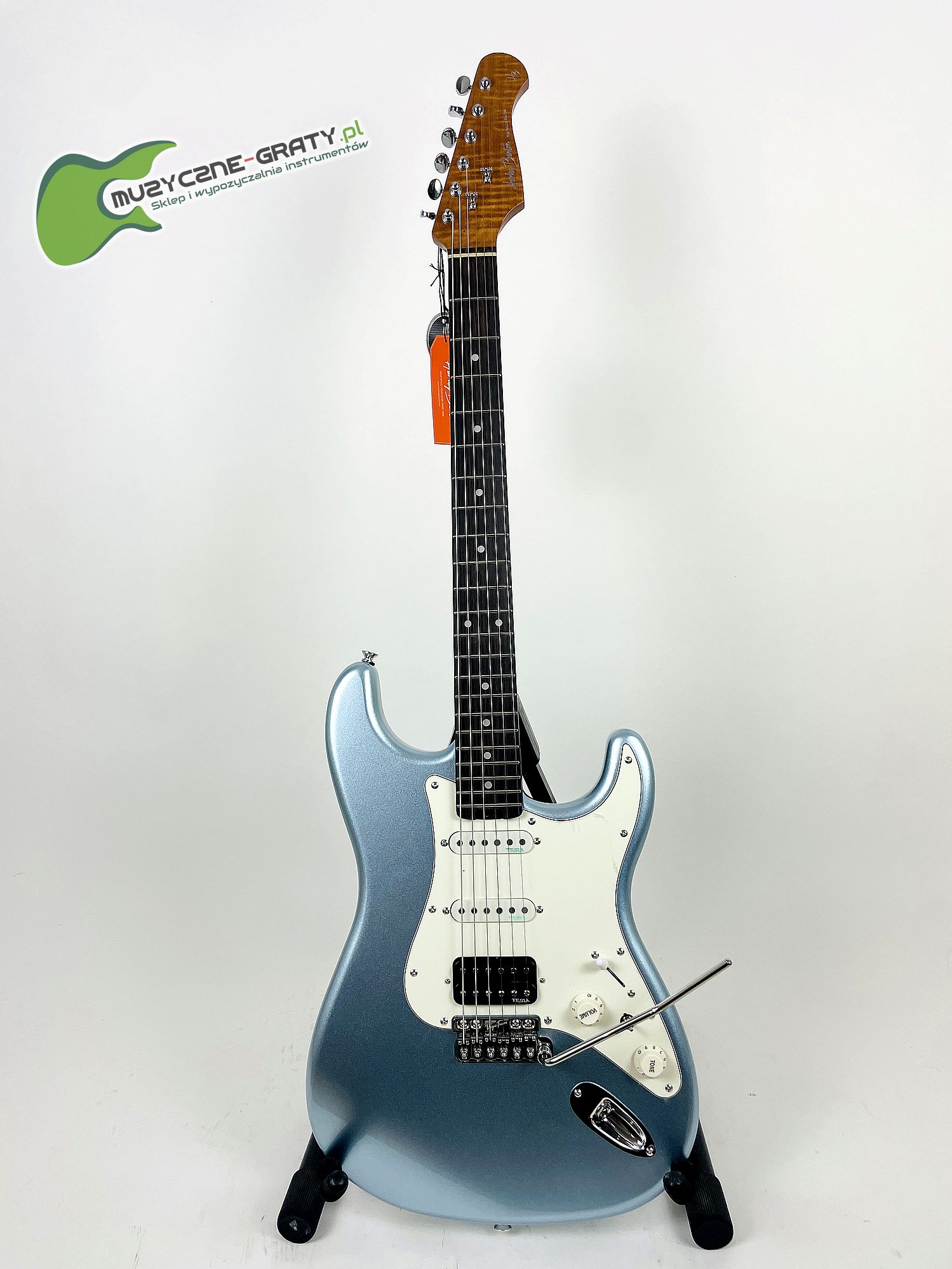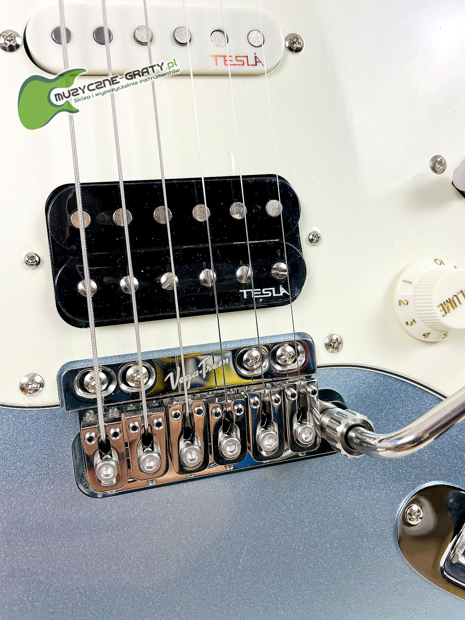 - Przetworniki: 1 humbucker Tesla OPUS-X z czarną osłoną (mostek) i 2 single Tesla Time Machine 57 Single (środkowa i gryfowa)